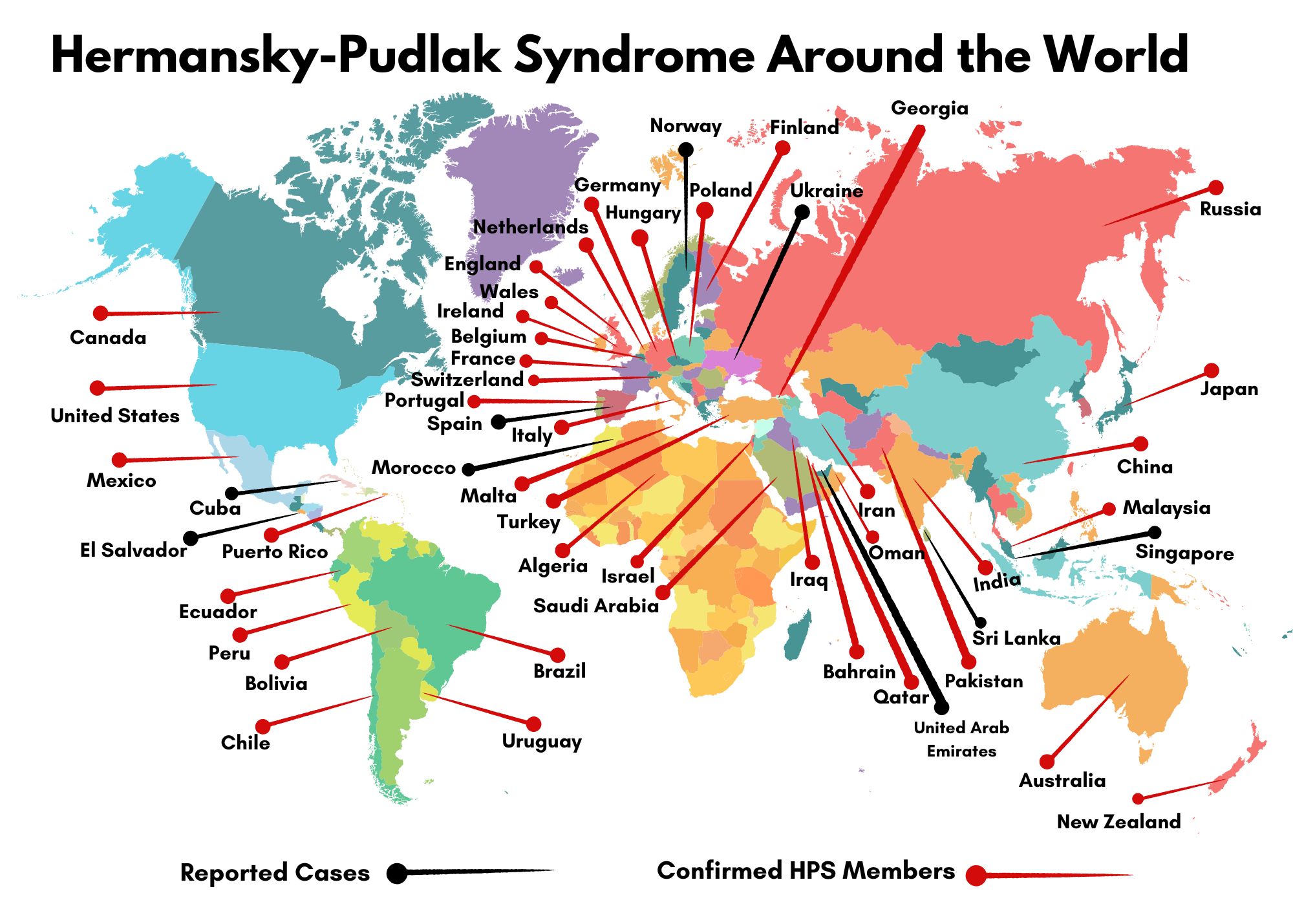 Hermansky-Pudlak syndrome, was discovered in Czechoslovakia in 1959, in two patients cared for by Dr. Hermansky and Dr. Pudlak. It has since been identified in many nationalities around the world—however it is very prevalent among people of Puerto Rican descent, due to a “Founders Effect” on that island.